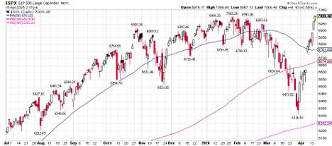 After what has been another difficult first few months of the year for the second year in a row (remember the Liberation Day tariffs around this very same time last year?), the U.S. stock market is once again in bloom. Following a near -10% decline in the S&P 500 starting in late January through the end of March, the market has bounced a resounding +11% with gains in 10 out of the last 11 trading days, setting fresh new all-time intraday highs in the process.