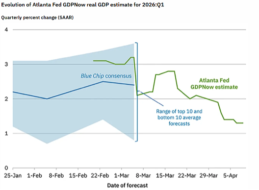 Economic growth outlook? The U.S. economy appears to be losing some steam with the Atlanta Fed GDPNow for 2026 Q1 drifting down to +1.3%. But the important point is that the economy is still growing, and early projections for 2026 Q2 are similarly positive for growth if not marginally more so.
